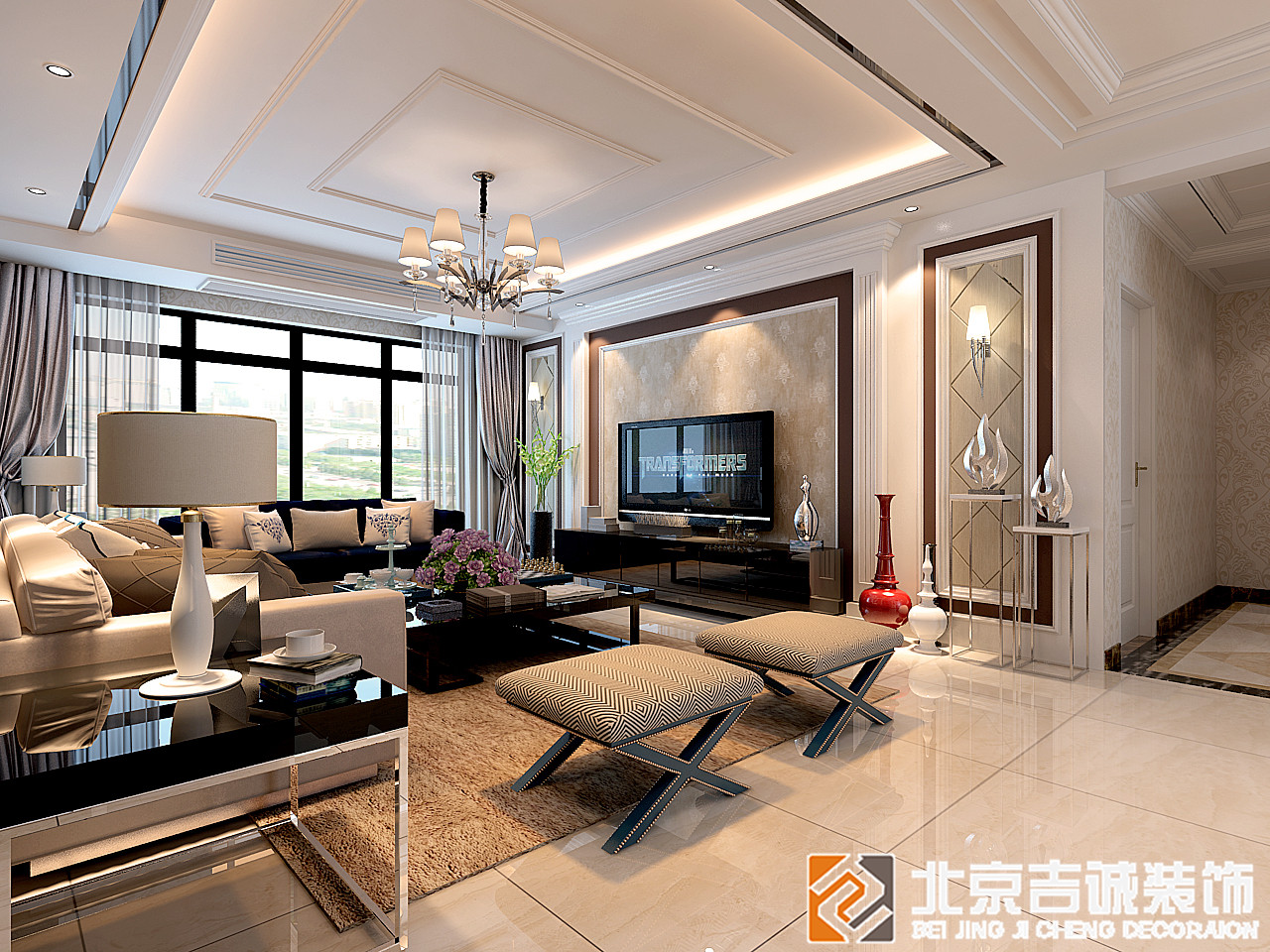 天鵝山莊120㎡三室兩廳美式風格